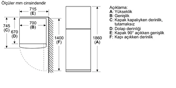 Soğutucu Net Hacim : 335 lt